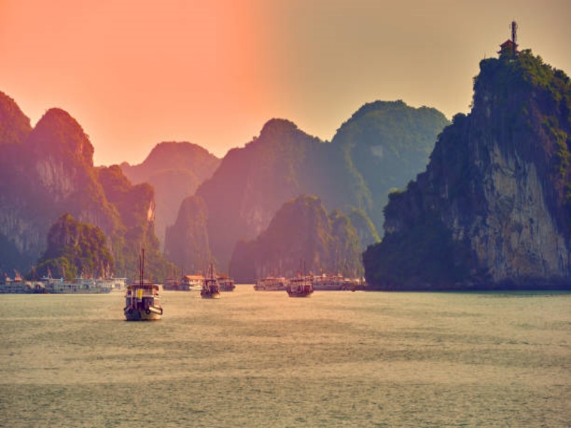The best time for photography in Ha Long Bay is during the golden hour at sunrise and sunset. (Source: Collected)