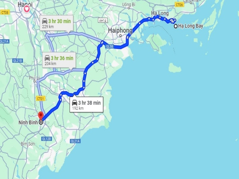 Ninh Binh is closer to Hanoi than Halong Bay vs Ninh Binh.