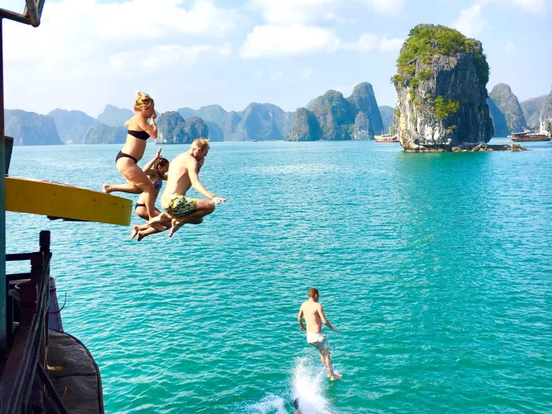Thrilling Adventures: Jumping from Boat in Lan Ha Bay Day Tour.