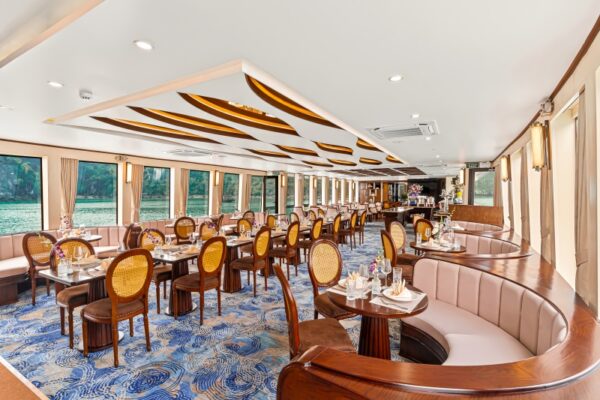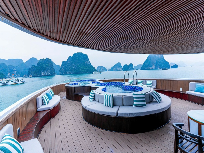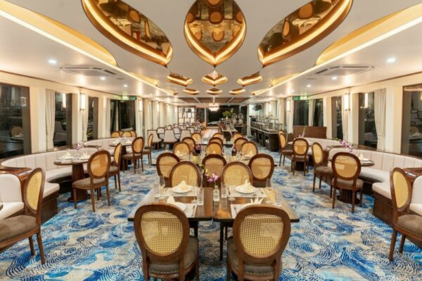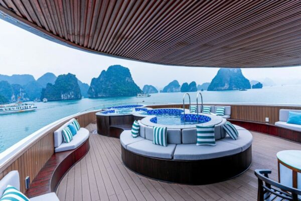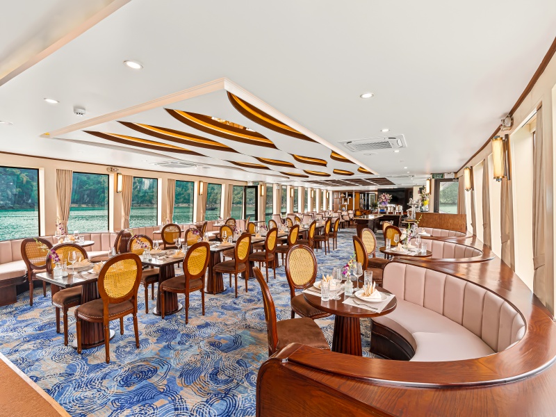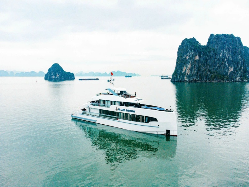 Launched in 2024, the Halong Symphony Cruise combines contemporary elegance with traditional Vietnamese craftsmanship.