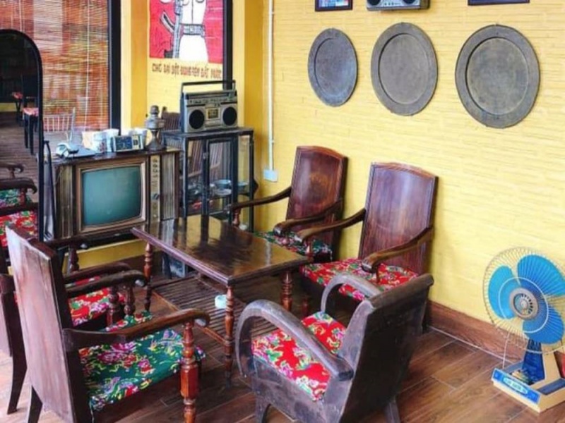 “Mau Dich” brings visitors back to old Vietnam with its nostalgic décor. From vintage radios and wooden furniture to green-framed windows, the entire space reflects a rustic, wartime atmosphere.