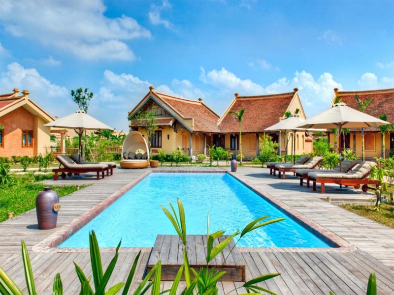 Tranquil poolside relaxation in Ninh Binh villas and resort