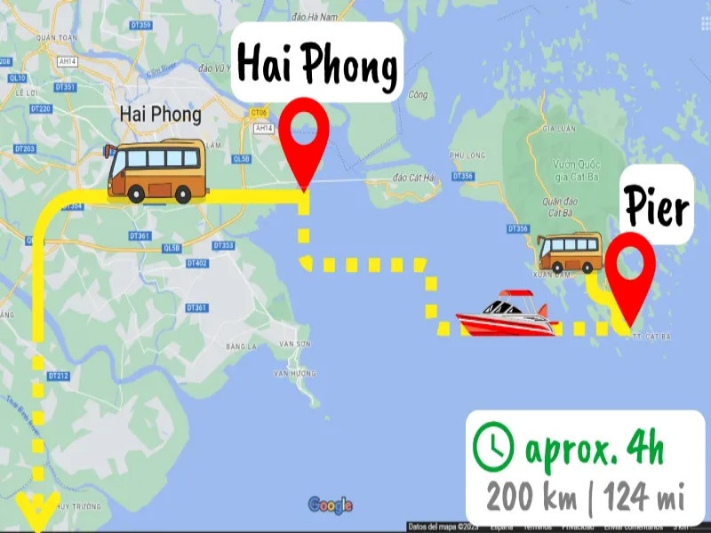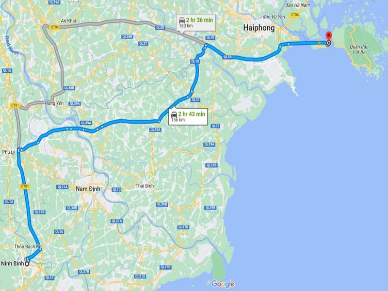 - Route Overview: Cat Ba Town → Cai Vieng/Got Pier → Ferry → Hai Phong Expressway → Ninh Binh