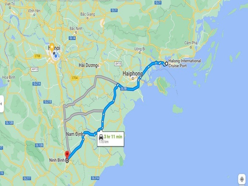 Distance & Travel Time from Ninh Binh to Ha Long Bay