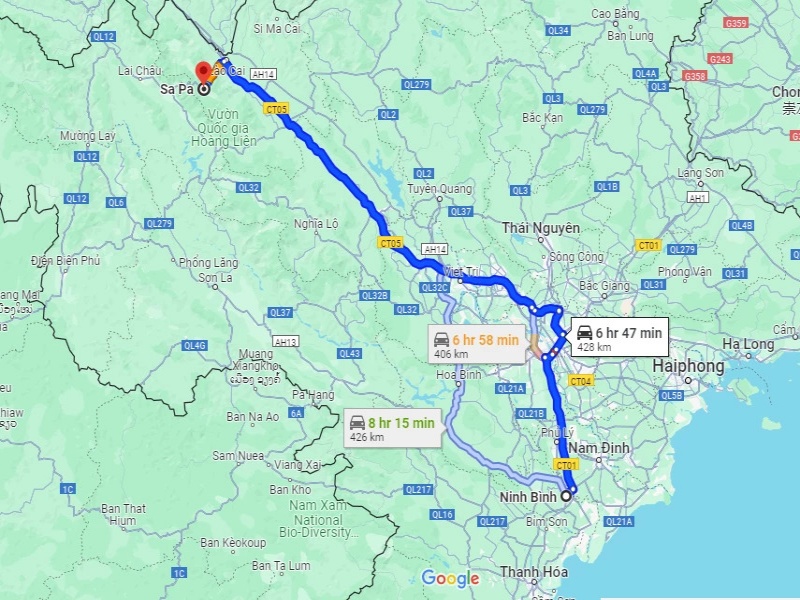 Traveling by bus from Ninh Binh to Sapa: 406km in approximately 6.5-7 hours.