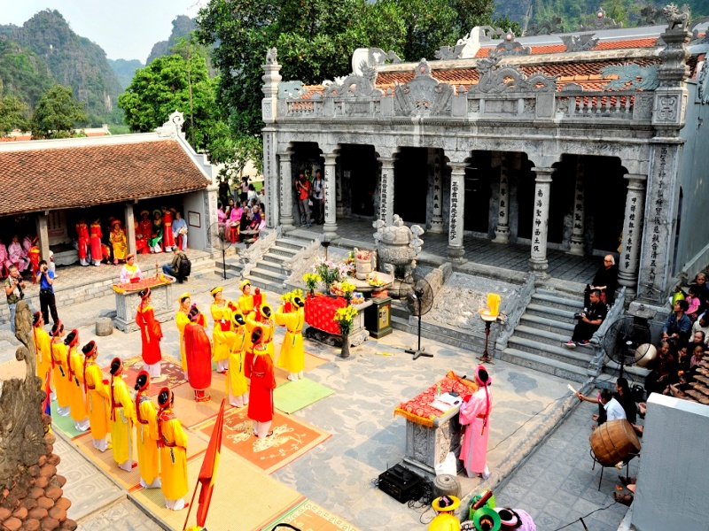 The temple is dedicated to the Tran Dynasty kings and generals, making it an important spiritual and historical landmark closely connected to the Tam Coc valley.
